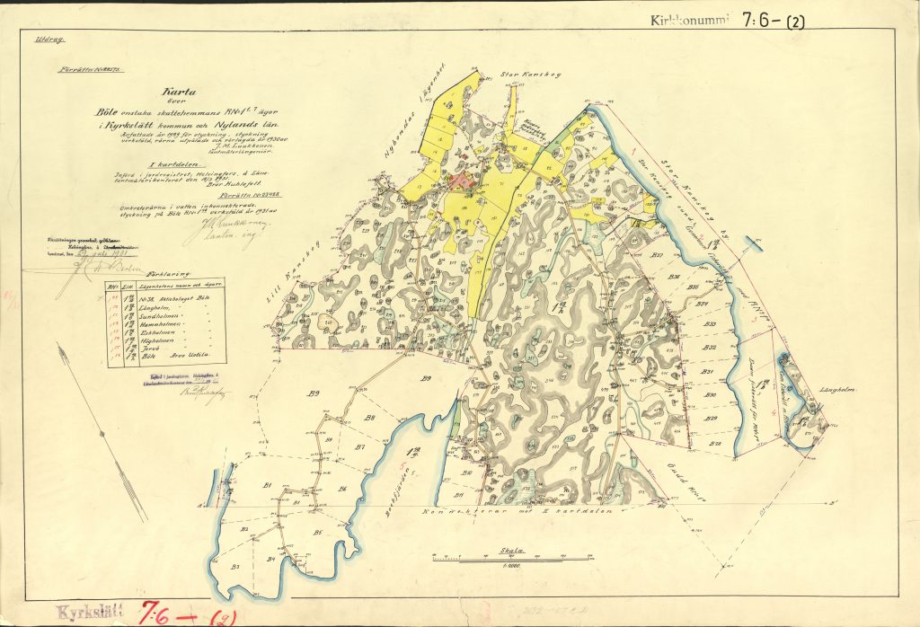 Karta över Böle enstaka skattehemmans ägor, avfattad år 1929