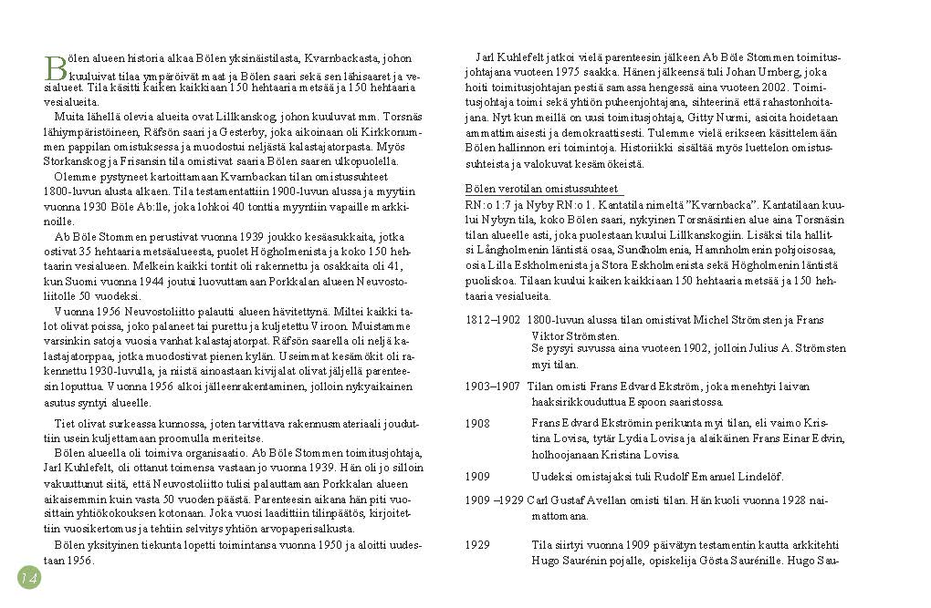 Text: Carl-Johan Kuhlefelt, Kaj Nurmi. Utgivare: Ab Böle Stomme, 2014