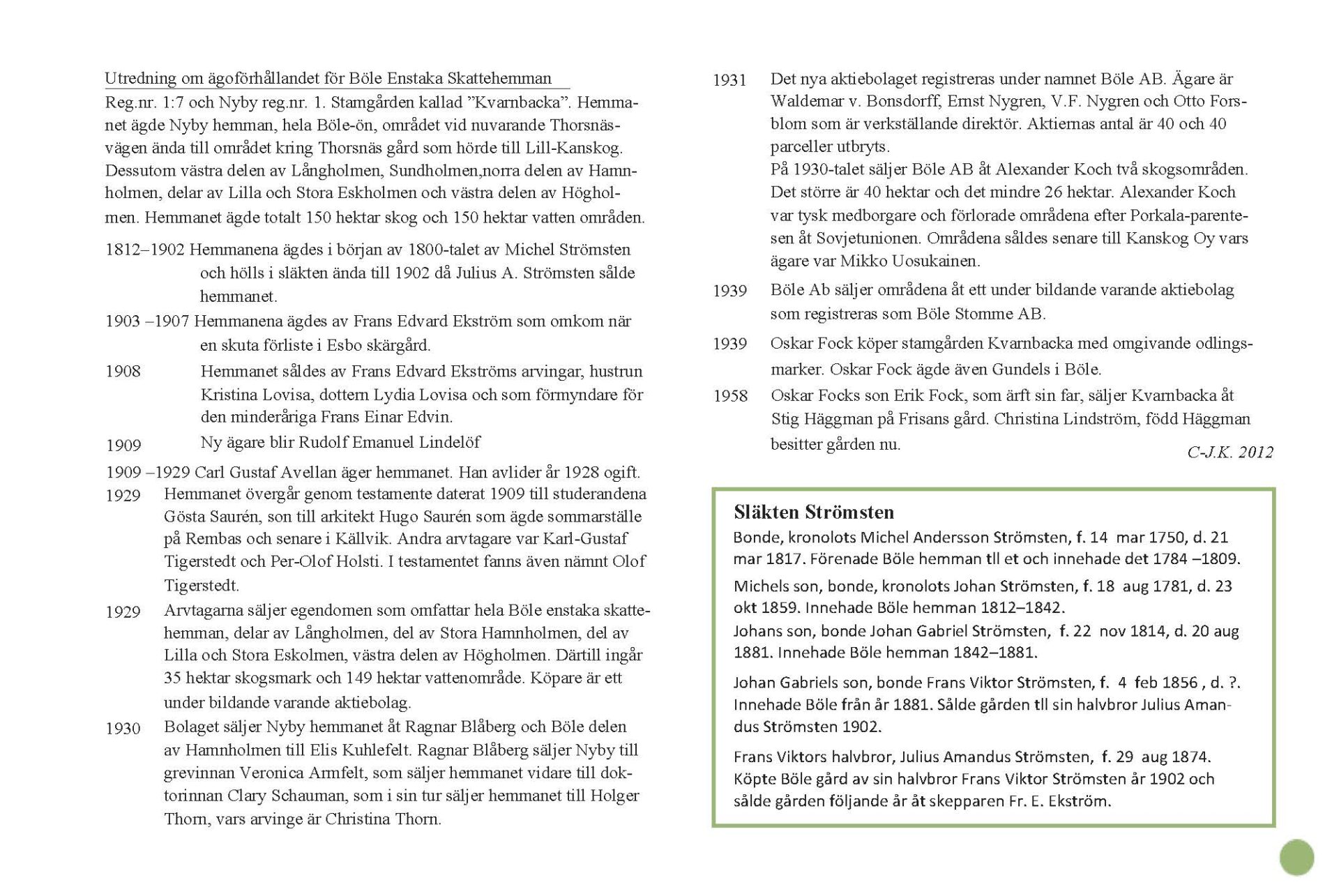 Teksti: Carl-Johan Kuhlefelt, Kaj Nurmi. Julkaisija: Ab Böle Stomme, 2014.